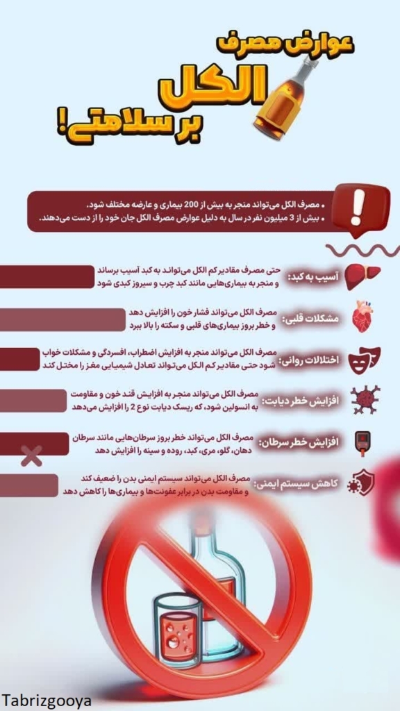 عوارض مصرف الکل بر سلامتی را در این اینفوگرافی مشاهده می کنید.